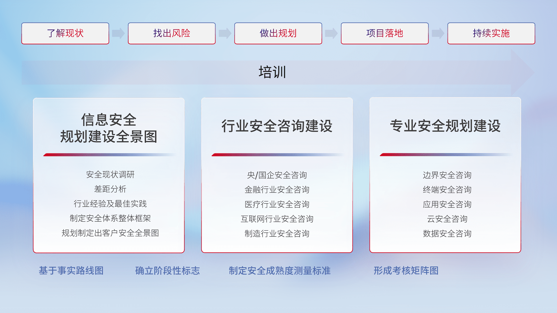梳理客户信息安全现状调研、、差距分析结果,,,,结合行业先进经验及最佳实践,,,制订客户的信息安全管控体系总结架构,,最终形成一个完整的客户信息安全规划与建设的全景图。。。。